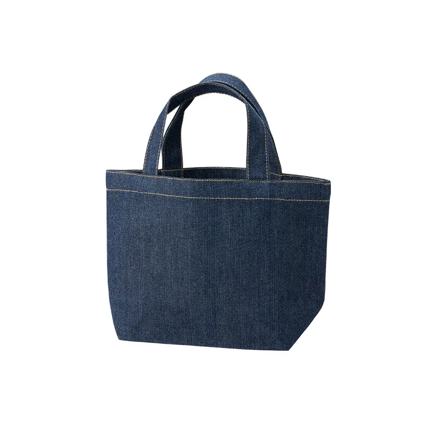 シックなインディゴカラーにベージュのステッチをほどこしたファッショナブルなデニムシリーズです。 定番の舟形デザインで使いやすい人気のデニムトートバッグです。 S・Mの2サイズ展開で、Sサイズはランチトートとして、 またはちょっとしたお出かけなどにもちょうど良いサイズ感です。 使い勝手のよいミニトートは、ノベルティとしても大人気のアイテムです。 単色印刷はもちろん、フルカラー印刷も可能なため オリジナルロゴやキャラクターを入れた物販品としてもご提案いただけます。