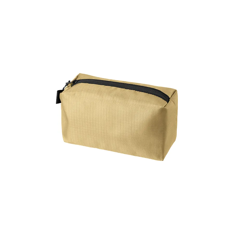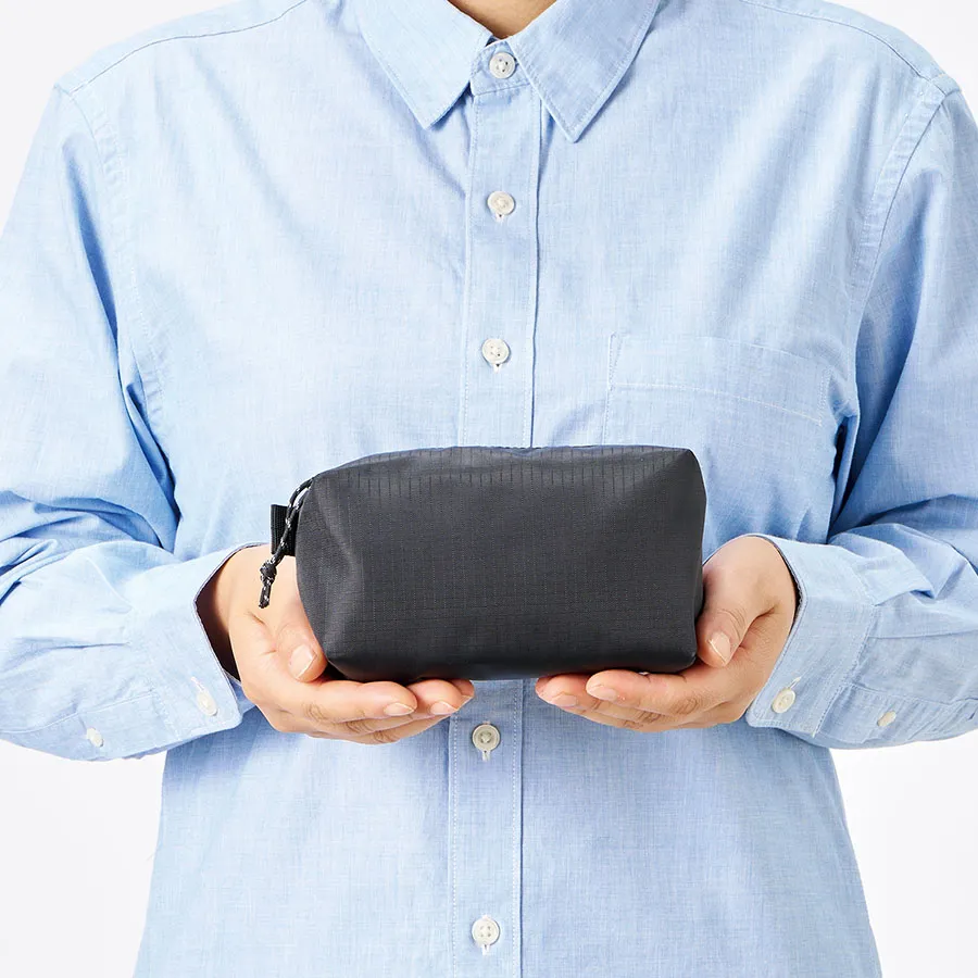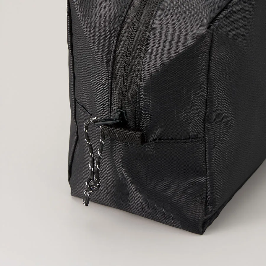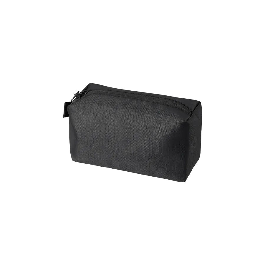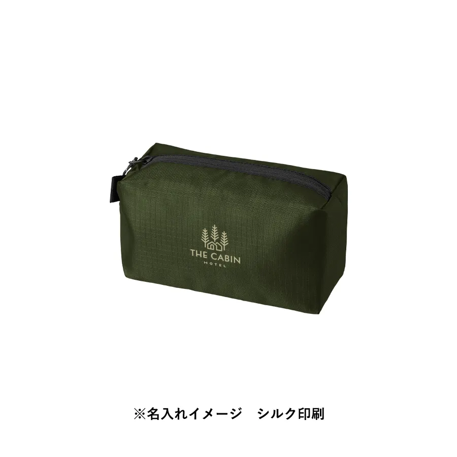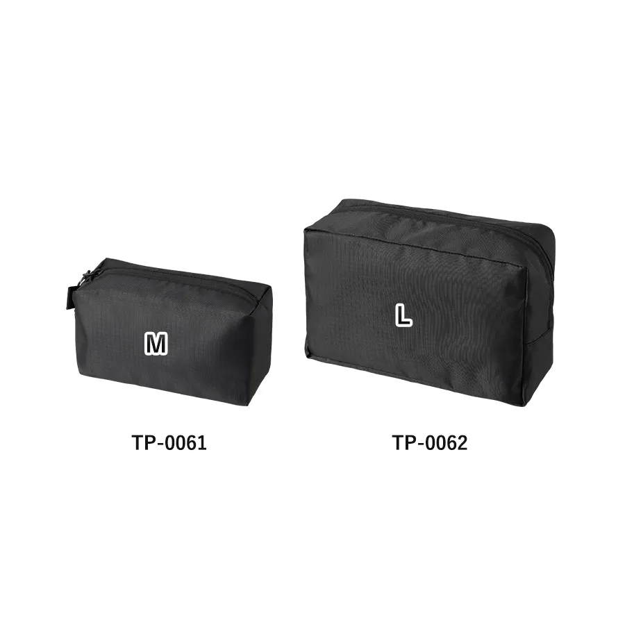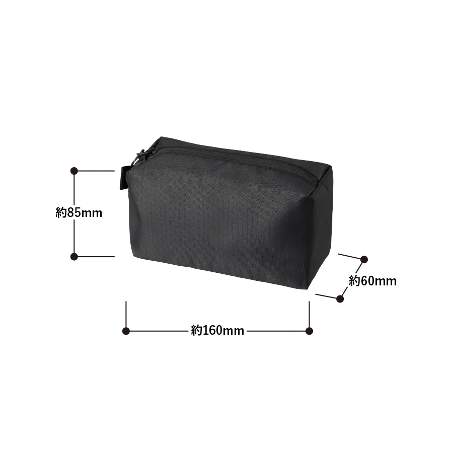 使いやすさとデザイン性を両立したマチ付きリップストップポーチです。 ザクザク入れられる便利なスクエア型です。 引手部分には柄のコードを採用、ファスナー裏使いでスタイリッシュな印象です。 M・Lの2サイズ展開で、Mサイズはペンケースや、コスメポーチなど日常使いにもぴったりで バッグの中でも邪魔にならないサイズ感です。 またサイドループ付きなので、お好きなキーホルダーなどをつけてアレンジも楽しめます。 単色印刷はもちろんフルカラー印刷も可能ですので、オリジナルノベルティやエンタメグッズなどにもぴったりです。 ※生地の特性上、シルク印刷をすると格子の柄が浮き出たような仕上がりになります。