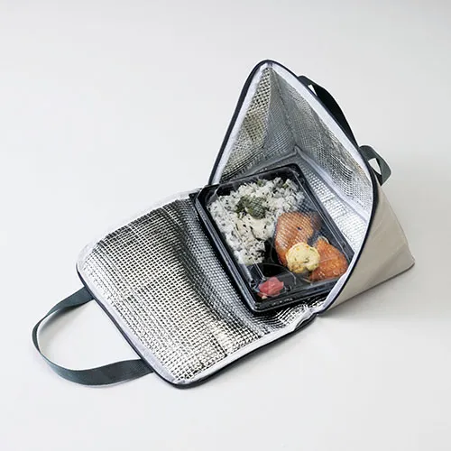 バカっと開くデルタ型!お弁当入れに最適な保冷温バッグです。