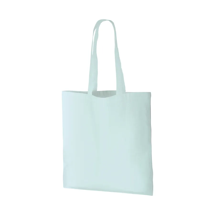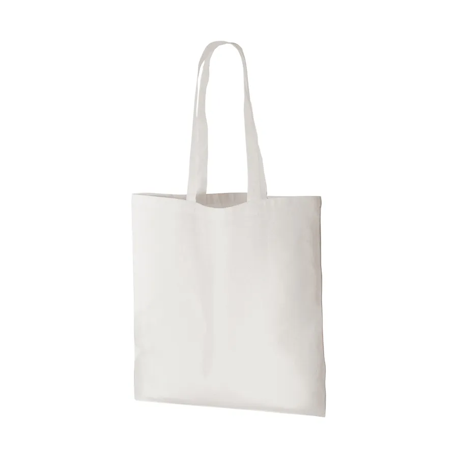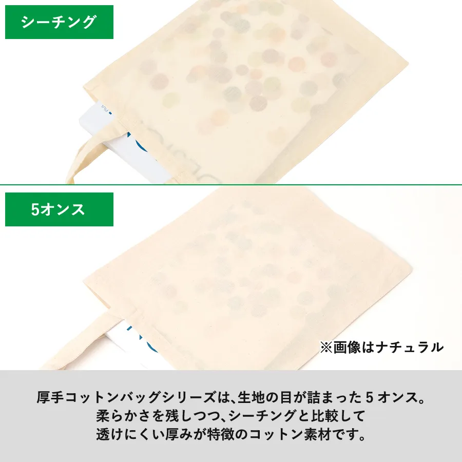 シーチングタイプよりも厚手な低価格コットンバッグです。マチなしタイプですが大きさもあるのでマルチに使えます。折りたたんで鞄に忍ばせるなどサブバッグとしてもオススメです。