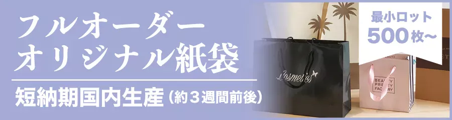 サイズや素材、印刷工程にいくつかの制限を設けることで、コストを抑えながらも独自デザインのオリジナル紙袋をスピーディーに製作できます。